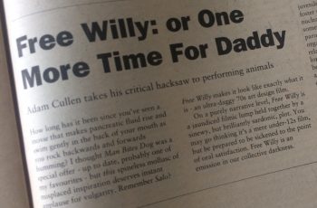In 1994, the late great artist Adam Cullen, sensing the film’s innate evil, penned a one-off review of family favourite Free Willy. This is the first in a series of classics from our as yet undigitised 1990s files.